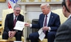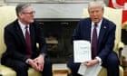 Donald Trump insisted that Vladimir Putin would “keep his word” on a peace deal for Ukraine, arguing that US workers extracting critical minerals in the country would act as a security backstop to deter Russia from invading again. During talks at the White House with the prime minister, Keir Starmer, the US president said that Putin could be trusted not to breach any agreement, which could aim to return as much of the land as possible to Ukraine. Trump refused to commit to deploying US forces to support a European-led peacekeeping force, although he said the US would “always” help the British military. He later indicated the US would make “great trade agreements” with the UK that could progress “very quickly”.